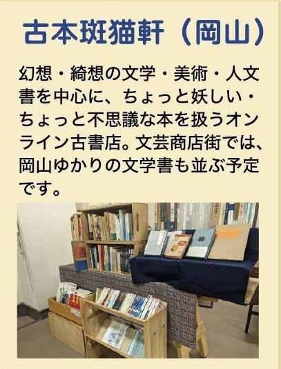 例のごとく「斑猫軒らしい品揃え」を意識して選書しつつ、「おかやま文学フェスティバル」にちなんで岡山周辺ゆかりの文学も並べますのでお楽しみに。