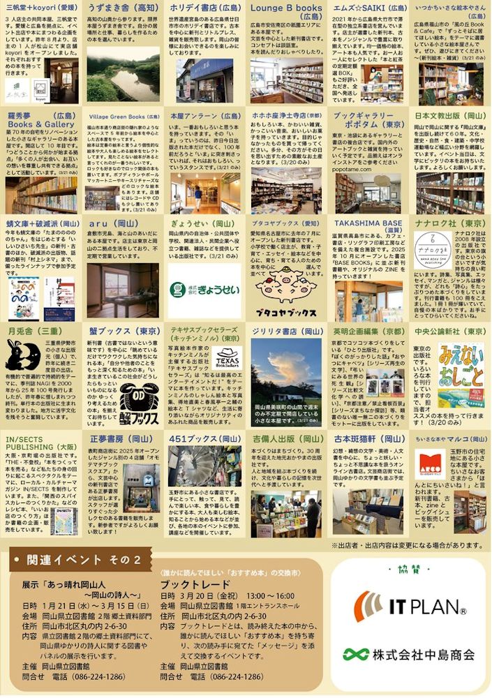 あわただしくイベントの告知が続きますが、3/20、21は地元・岡山市で開催されるイベントに出店します。